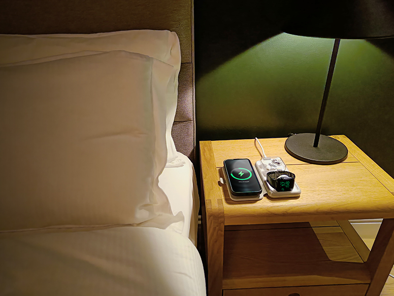 The charging surface for the watch is especially designed for the Apple Watch and MFi-certified.