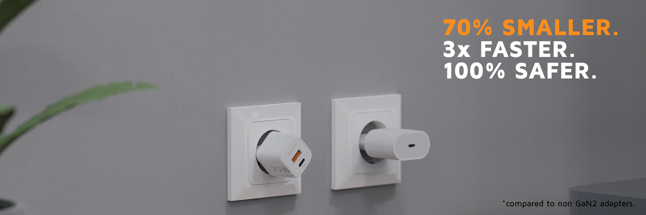 Don't be fooled by its size, this 20W Wall Charger packs a punch when it comes to power. GaN² Ultra – the next generation of GaN technology – allows our charger to safely and efficiently handle more power in an even smaller size.